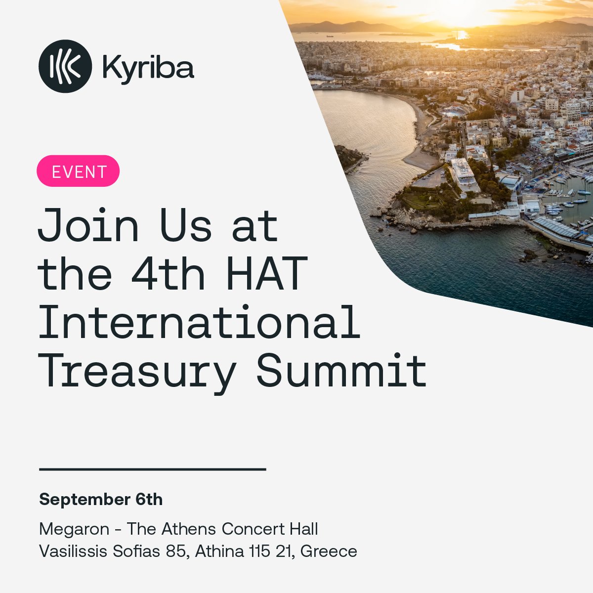 @kyribacorp Kyriba will be at the 4th HAT International Treasury Summit in Athens! Get ready to hear from Kyriba's Michał Czerniecki and Gabriella Apergi, as they discuss "How Treasurers Achieve Enterprise-Wide Consensus for a TMS Project." More details here:bit.ly/3AtiuDW1X